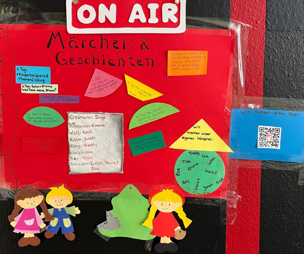 - Eigenes Hörspiel Projekt Auf einem Kreativ-Tonie wurde ein von den Kindern, mit Hilfe eines Tablets und der dazugehörigen App, ein Märchen-Hörspiel aufgenommen. Die Kinder haben eigene Texte entwickelt und eingesprochen, Geräusche aus der Natur aufgenommen und eingepflegt, Musik hinzugefügt und so entstand ein bis heute noch existierendes Hörspiel von den und für die Kinder.