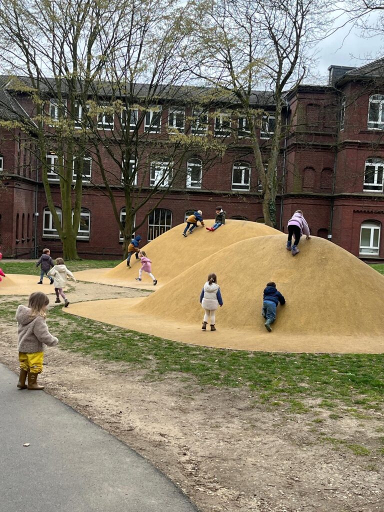 - die Großen (Maxis) beider Gruppen versammeln sich, um gemeinsame Aktivitäten (Spielplatz, Spaziergang, Schnitzeljagd, Angebote,…) zu unternehmen und dann um 12:30 Uhr Mittag zu essen und im Anschluss gemeinsam im obersten Stockwerk zu Ruhen (Hörspiel hören, eventuell schlafen, wer schlafen möchte)